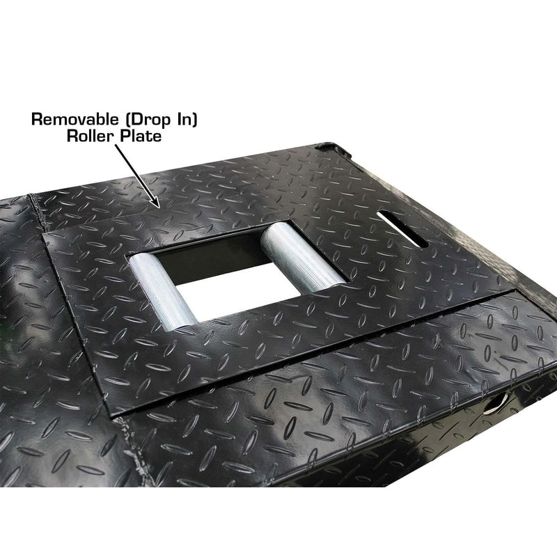 This is a complete motorcycle lift package, featuring an adjustable padded front wheel vise and a heavy-duty air-operated foot valve for easy operation. One of the ACL’s standout features is the removable rear plate system—the rear plate can be removed entirely for improved access to the rear wheel or replaced with the included roller plate, allowing the rear tire to spin freely for servicing and testing.